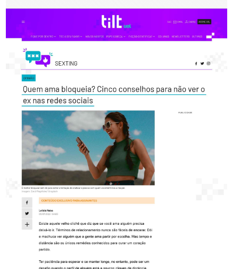 UOL Tilt - Quem ama bloqueia? Cinco conselhos para não ver o ex nas redes sociais. Leia matéria com Heloísa Capelas.